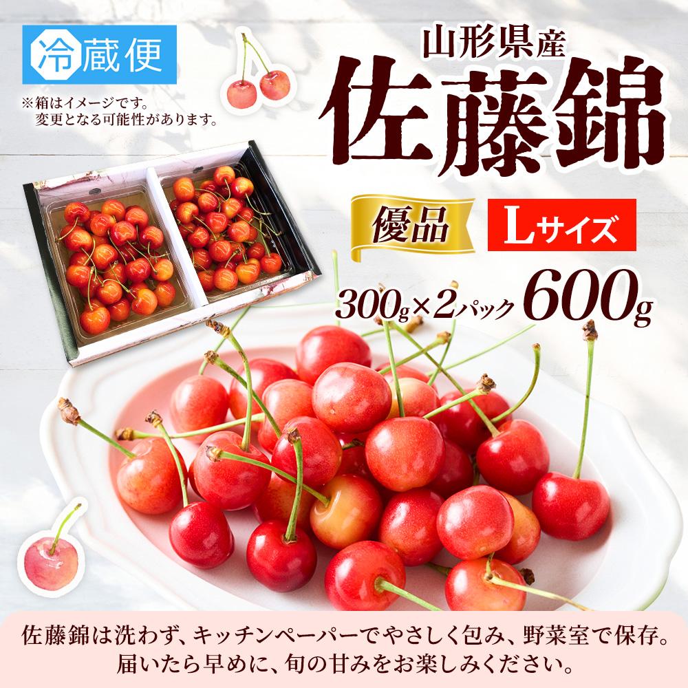 | 商品内容 | 山形県産さくらんぼ 佐藤錦 優品 L玉 600g前後 2L・L混合あり |