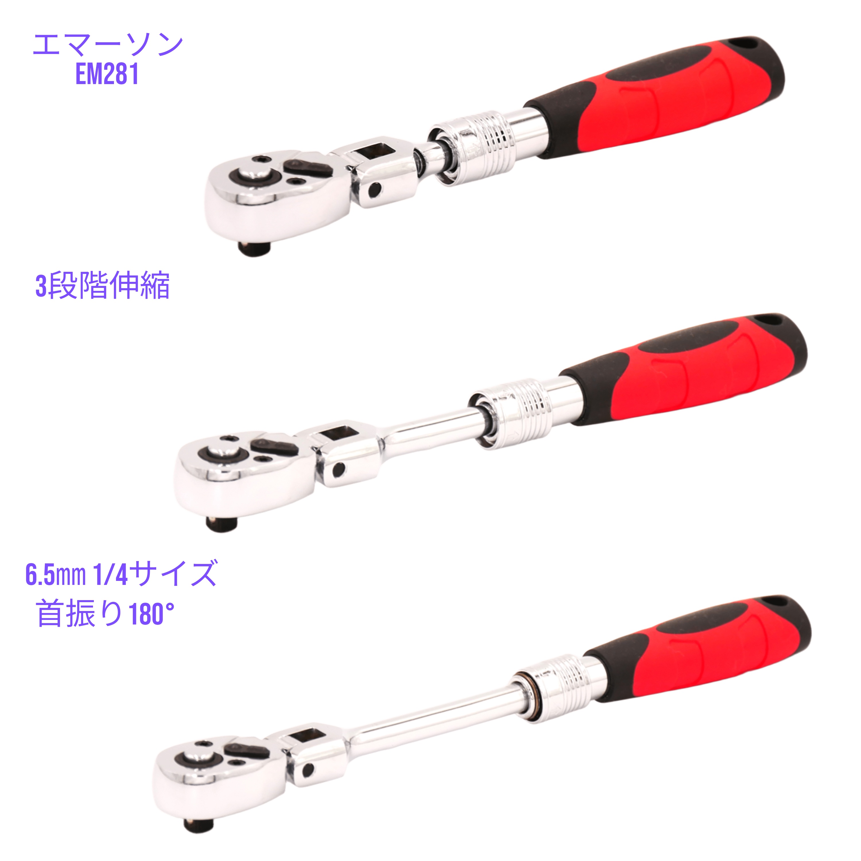 極小スペースでも自由な角度でアプローチ可能。狭い場所での作業効率を劇的に向上させます。もう無理な体勢で格闘する必要はありません。 - 3段階に伸縮可能!ベストな長さで最適なトルクを