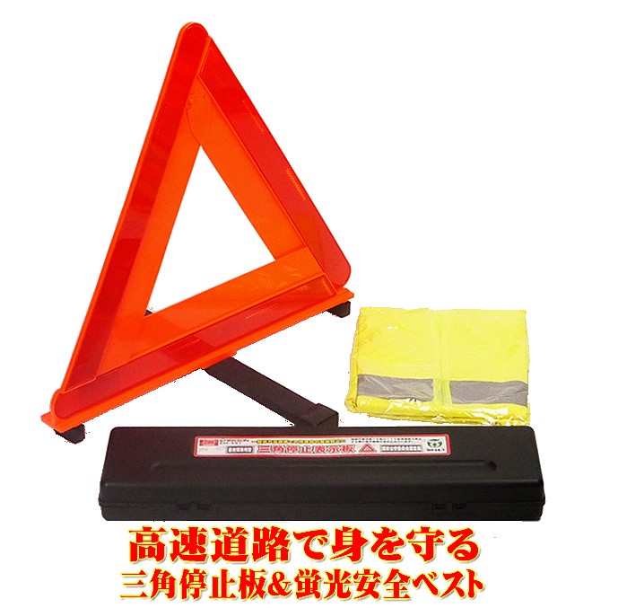 三角停止板&蛍光安全ベストセット エマーソン EM-351 国家公安委員会認定品 三角停止表示板 三角表示板