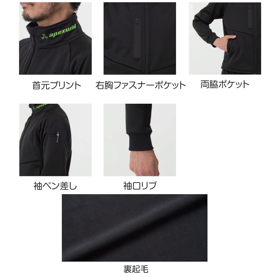 S-5L 8911 ウインドブロックギアジャケット apexwin 防寒着 防風 保温 ストレッチ 裏起毛 長袖 ブルゾン ワークウェア 作業服 作業着 ATACKBASE アタックベース
