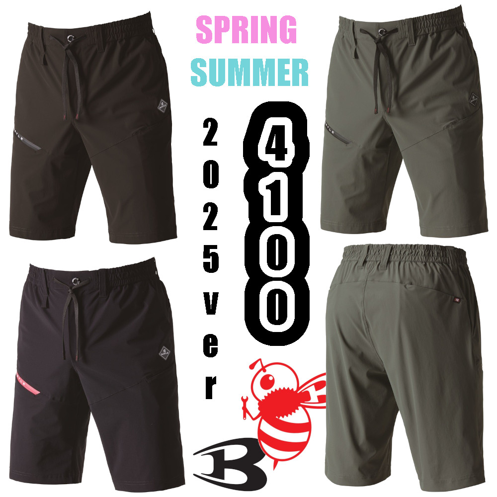 XXL 4100 ショートパンツ 2025年モデル BURTLE ユニセックス 夏用 作業服 接触冷感 消臭 吸汗速乾 通気性 UVカット 軽量 ストレッチ 作業ズボン バートル