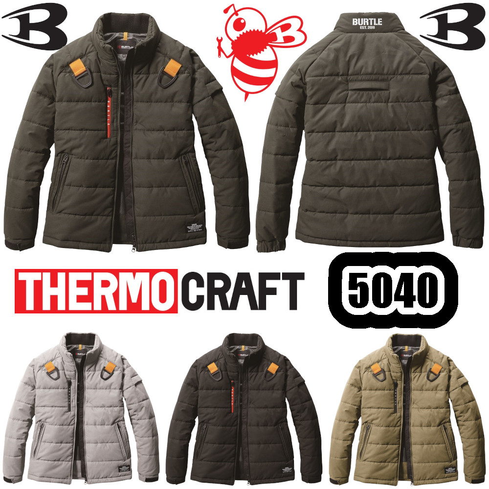 S-XL 5040 防寒ジャケット BURTLE 防寒着 作業服 バートル THERMOCRAFT ユニセックス ストレッチ 耐久性 撥水性 防風性 保温 サーモクラフト 電熱パッド対応
