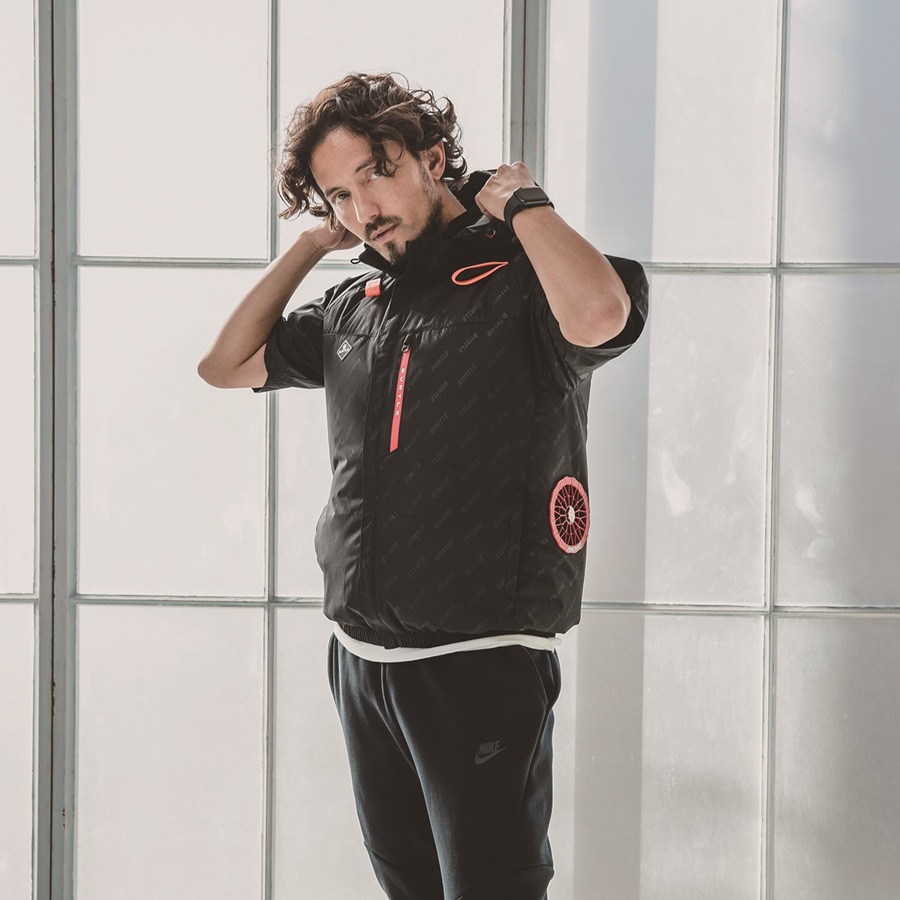 ・遮熱効果(-8度)に優れたアルミC加工と軽量、撥水性を備えたソフトシェル素材