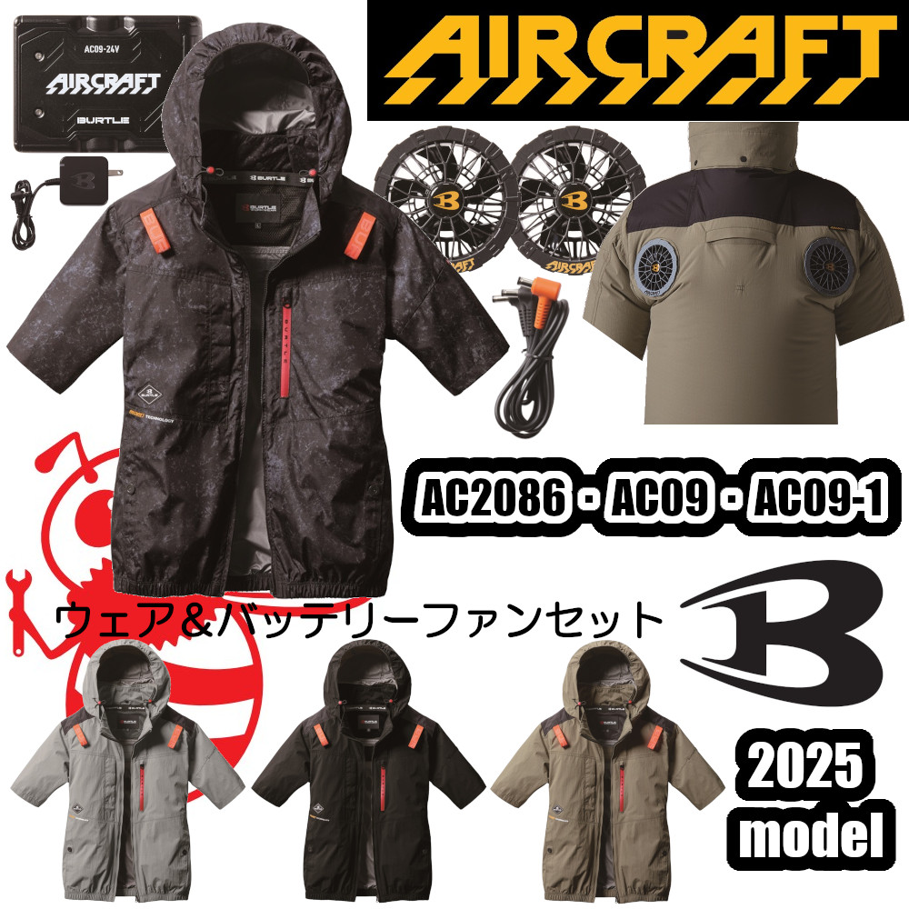 S-3XL AC2086 AC半袖ブルゾン 2025年モデル BURTLE エアークラフト バッテリーファンセット 空調服 ハイバックファン 作業服 UVカット 熱中症対策予防 バートル