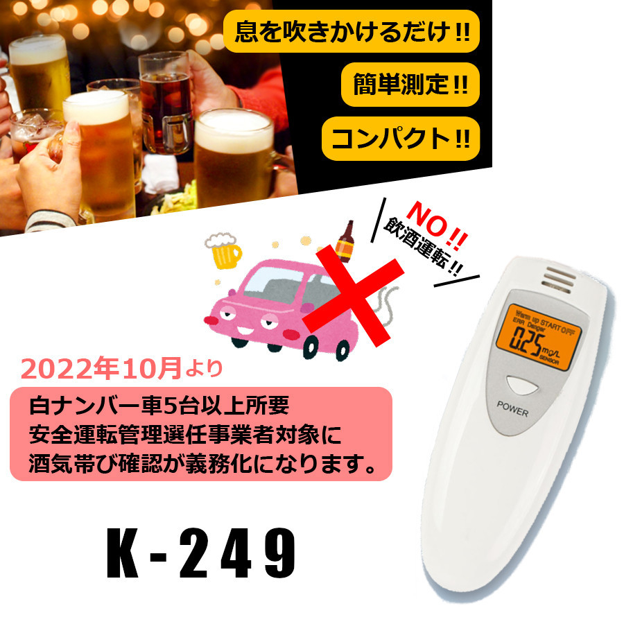 アルコールチェッカー K-249 安全運転管理選任事業者対象 酒気帯び確認 簡単測定 コンパクト 携帯用 呼気中アルコール濃度測定 乾電池 別売り 返品交換不可商品