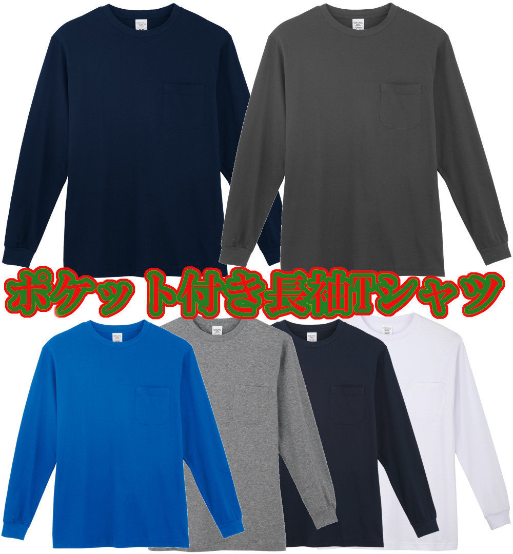 5L 作業服 CO-COS 長袖Tシャツ 3008 ポケット付き 丸首 WORLDPAL 綿100% ユニセックス コーコス 5L