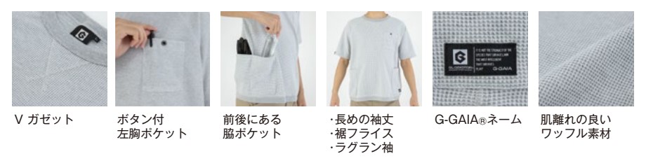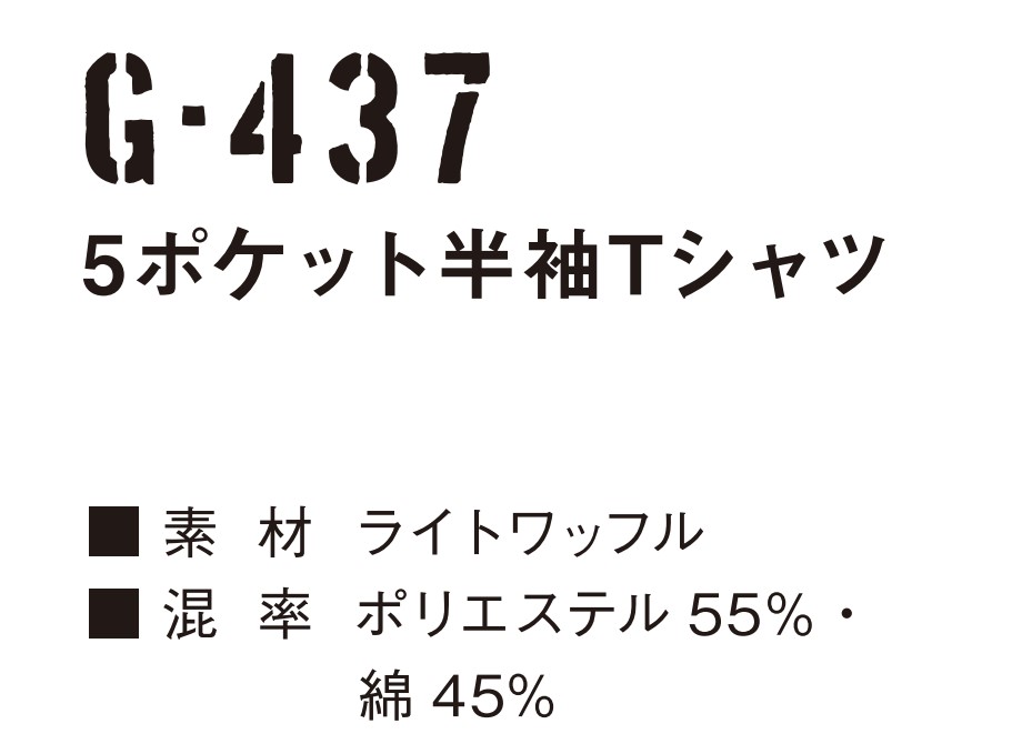 SS-5L G-437 5ポケット半袖Tシャツ GLADIATOR 作業服 ニット ワッフル 丸首 作業着 肌着 収納性 アウトドア キャンプ 男女兼用 CO-COS コーコス信岡