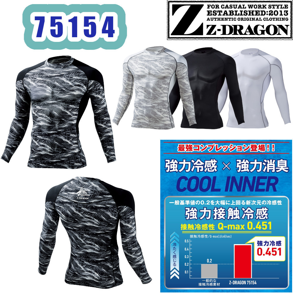 SS-LL 75154 ロングスリーブ Z-DRAGON 作業服 吸汗速乾 接触冷感 消臭 抗菌 ストレッチ 夏用 ニット コンプレッション インナー 肌着 作業着 返品交換不可
