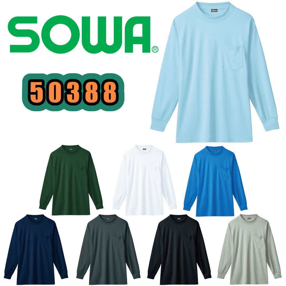 3L 50388 長袖ローネックTシャツ 胸ポケット付き 桑和 SOWA 作業服 吸汗速乾 通気性 ドライ 消臭 ストレッチ ポリエステル100% ワークウェア 返品交換不可