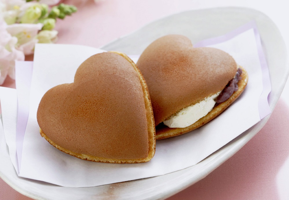 どら焼きランキング1位のバターどら焼きをハート型に焼き上げた可愛くて美味しい和菓子です!