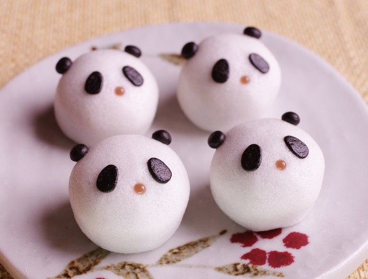 本格蒸篭でふっくら蒸し上げ、かわいいパンダ型に仕上げました。
