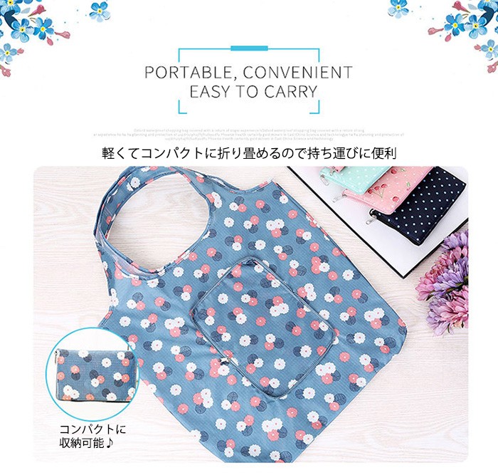 かわいい おしゃれなデザインのエコバッグ!普段のお買い物も楽しくなります♪コンパクトでバッグに入れて置いても邪魔になりません!
