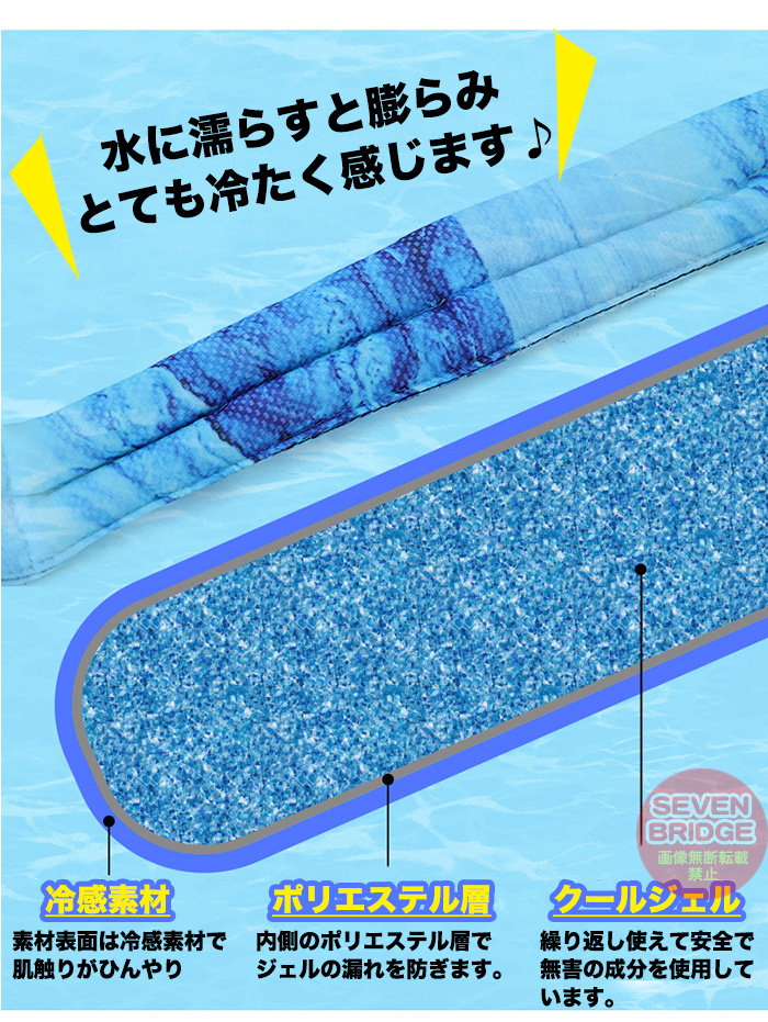 ひんやりと感じるクールな冷感素材と冷たさを持続するクールジェル入りで暑い日のお散歩対策に大活躍!