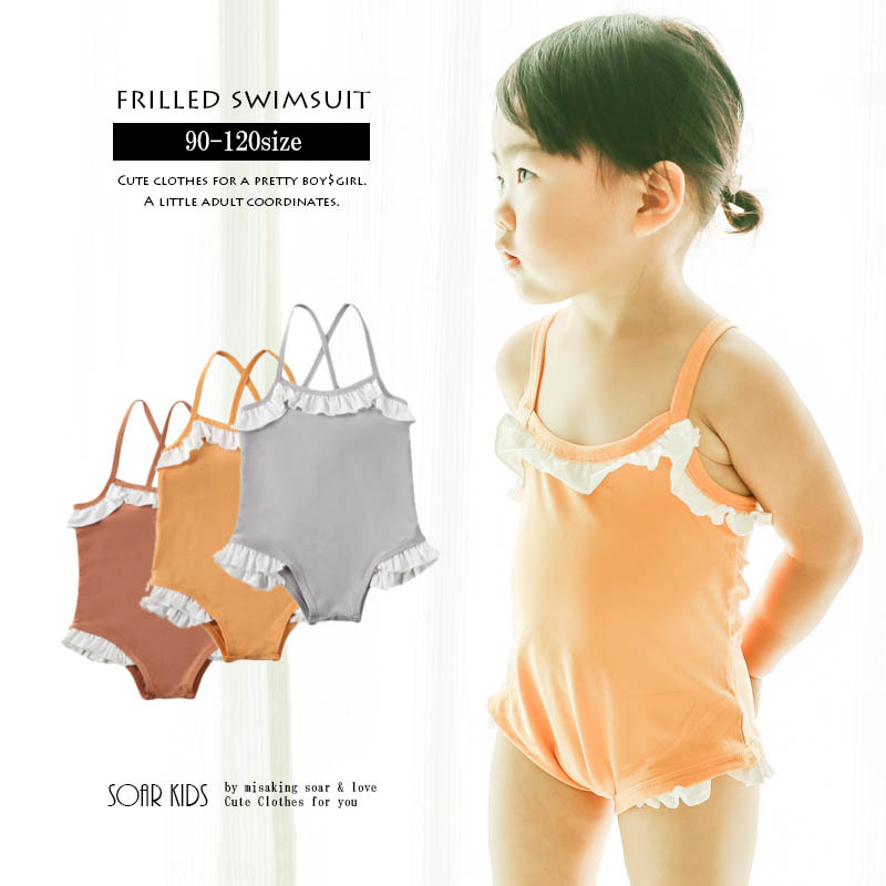 アウトレット 送料無料 フリルくすみカラー水着 海外子供服 キッズ ベビー 女の子 プール 海 SOAR