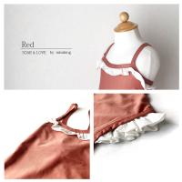 ※こちら胸元が開いたデザインとなっております。気になる方はワンサイズアップしていただくと胸元が少し閉まります。肩紐は調整機能などはございませんので縫って調整いただけると幸いです。