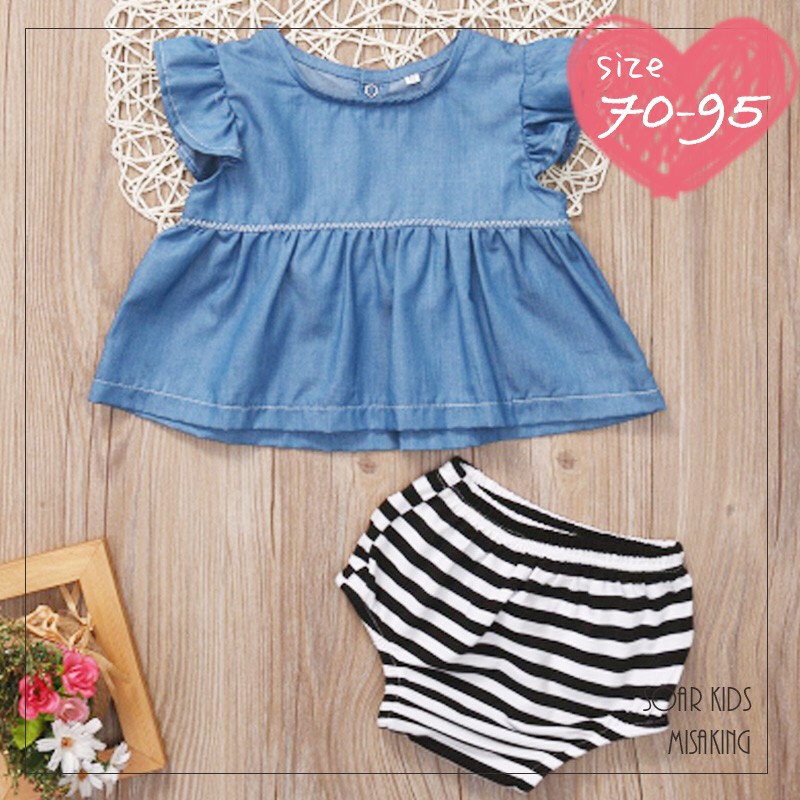 アウトレット 送料無料 デニムボーダーパンツセット 海外子供服 女の子 夏 春
