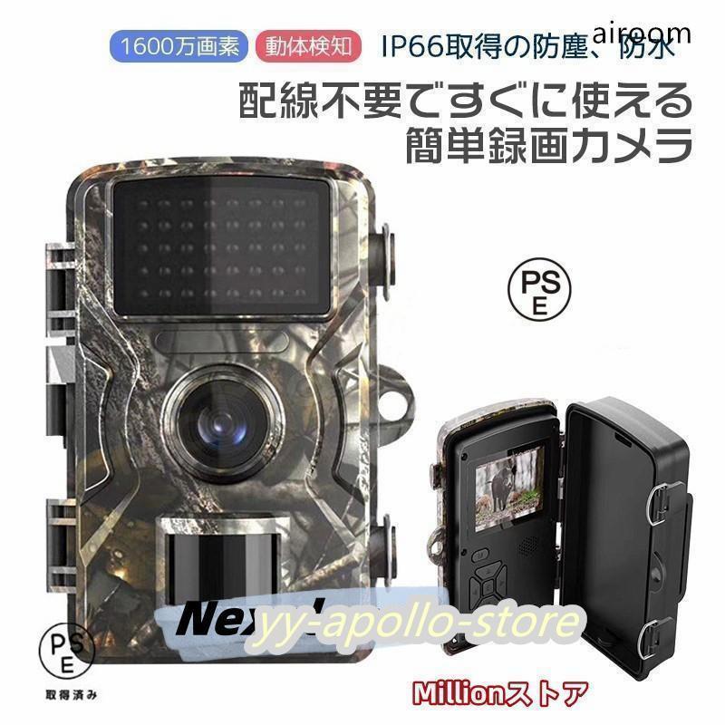 防犯カメラ トレイルカメラ 屋外 ワイヤレス 電池式 1600万画素 モニター付き 工事不要 電源不要 小型 屋外カメラ 家庭用 監視 暗視 防水防塵 人感センサー
