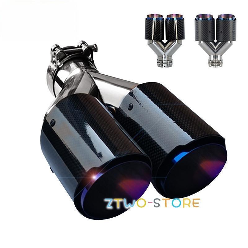 マフラーカッター カーボン ステンレス製 W型 2本出し パイプマフラー 自動車 後付け テールスロート 高級感 運動風 焼入れ加工 入口内径60?67mm