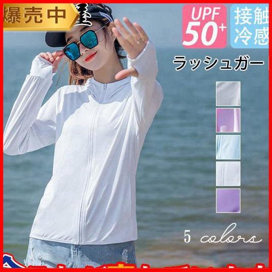 ラッシュガード レディース 夏用 ひんやり 涼しい 接触冷感 パーカー 長袖 フード付き 日焼け対策 水着 体型カバー 紫外線対策 透けない