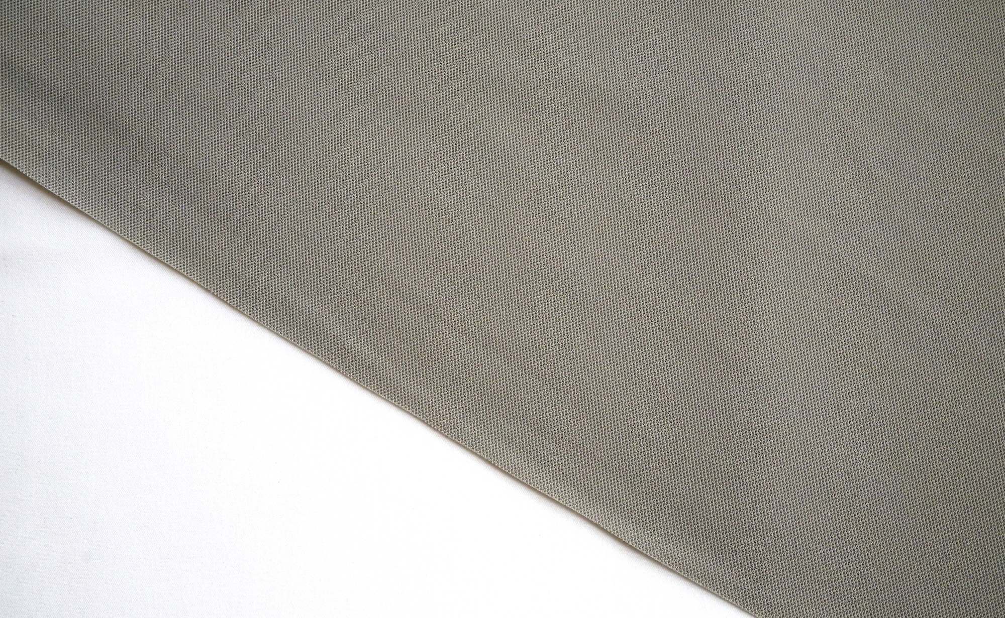 "主にスピーカーの前面に使用されるスピーカーネット。素材は鹿子織りのジャージ素材でリサイクル100%のPET素材を使用。カラーは「黒」、長さは1m、幅は共通サイズで1.6m。吸音パネルにも使用する生地です。