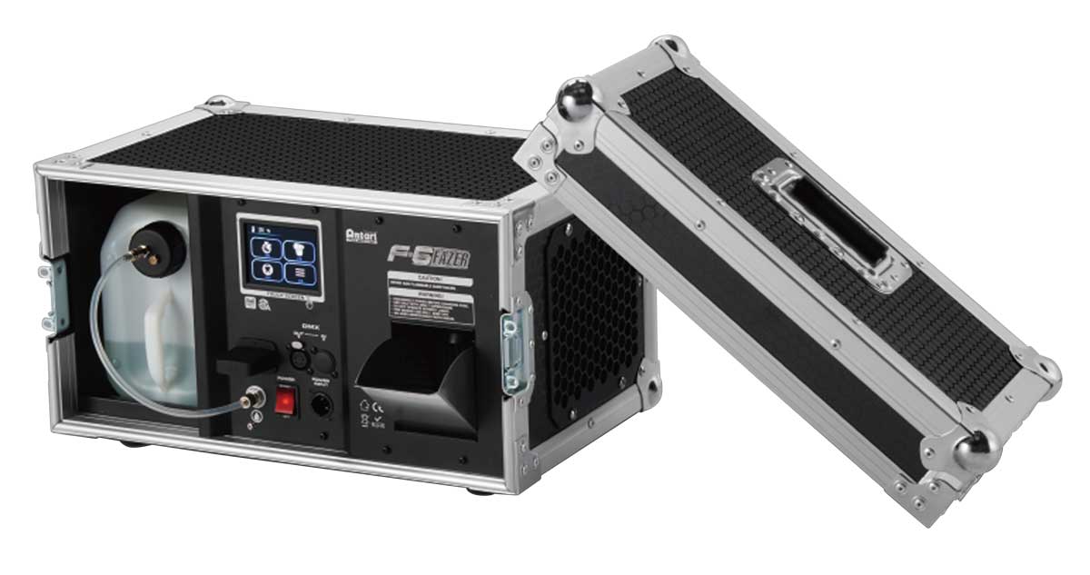 ANTARI「F-6 FAZER」はタッチスクリーンで操作可能なツアーケース一体型フェイザーマシンです。フロントパネルにTFT-LCDタッチスクリーンを採用し、マシンの設定が驚くほど簡単になりました。外装には新しくハニカムスタイルのケース素材を採用し耐久性が強化されました。電圧保護機能によりマシンの安全性と寿命が向上。噴霧レベル向上しており、コンパクトな筐体ながら大きな会場でもご使用いただけます。