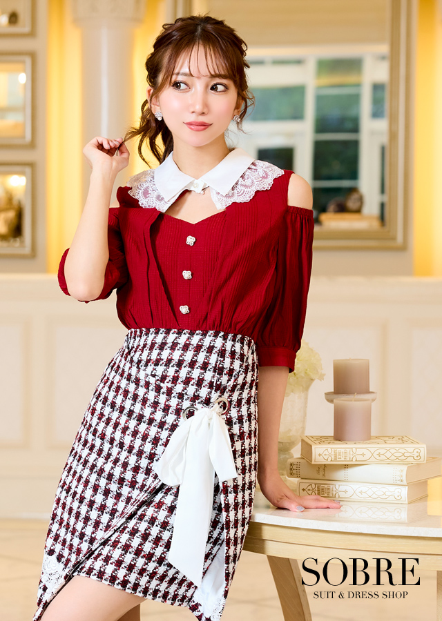 【SALE価格】パーティードレス キャバドレス ナイトドレス 長袖 キャバクラ クラブ 大きいサイズ レースカラーツイードワンピース 返品交換不可
