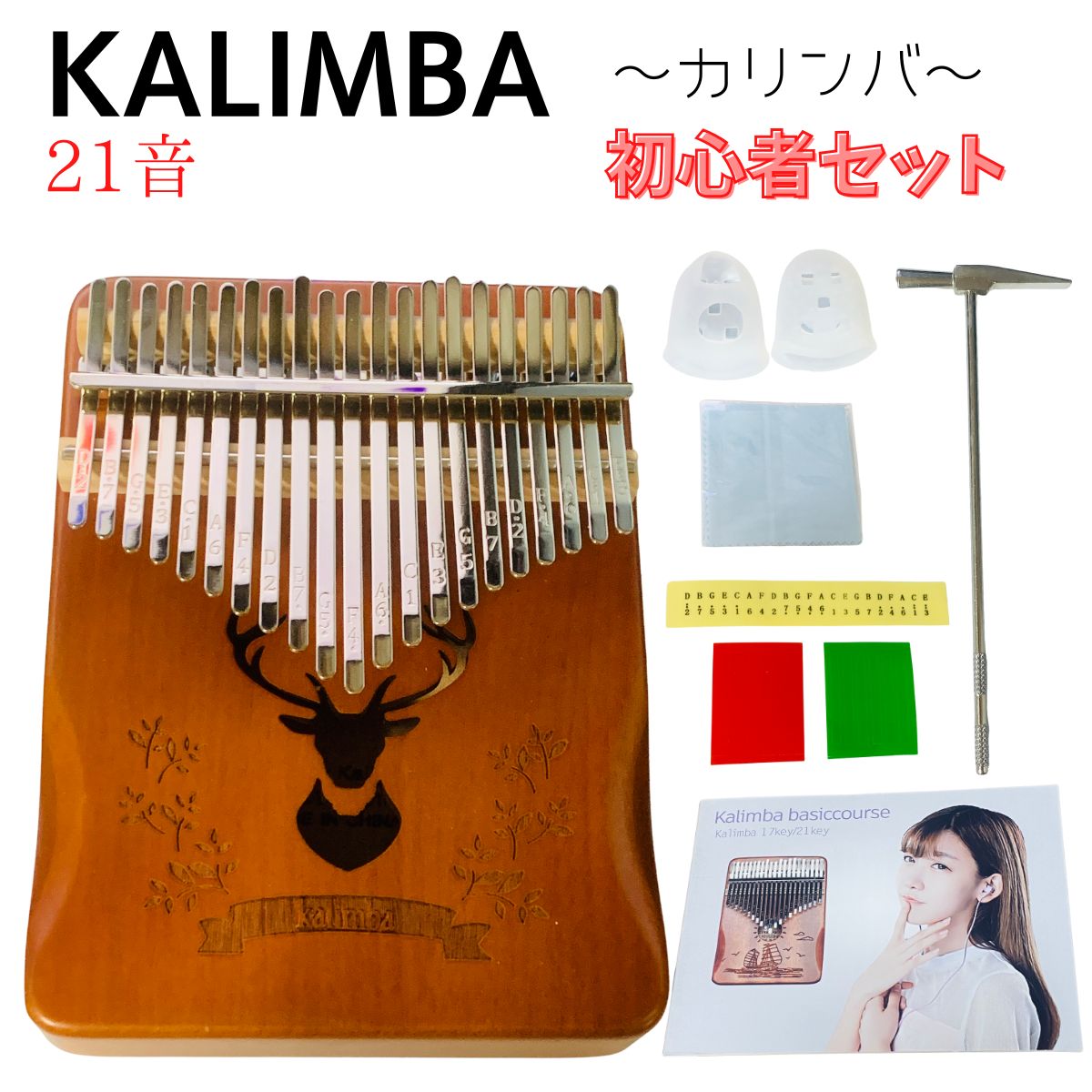 カリンバ 楽器 親指ピアノ ハンドオルゴール 初心者 スタート 21音キー ケース