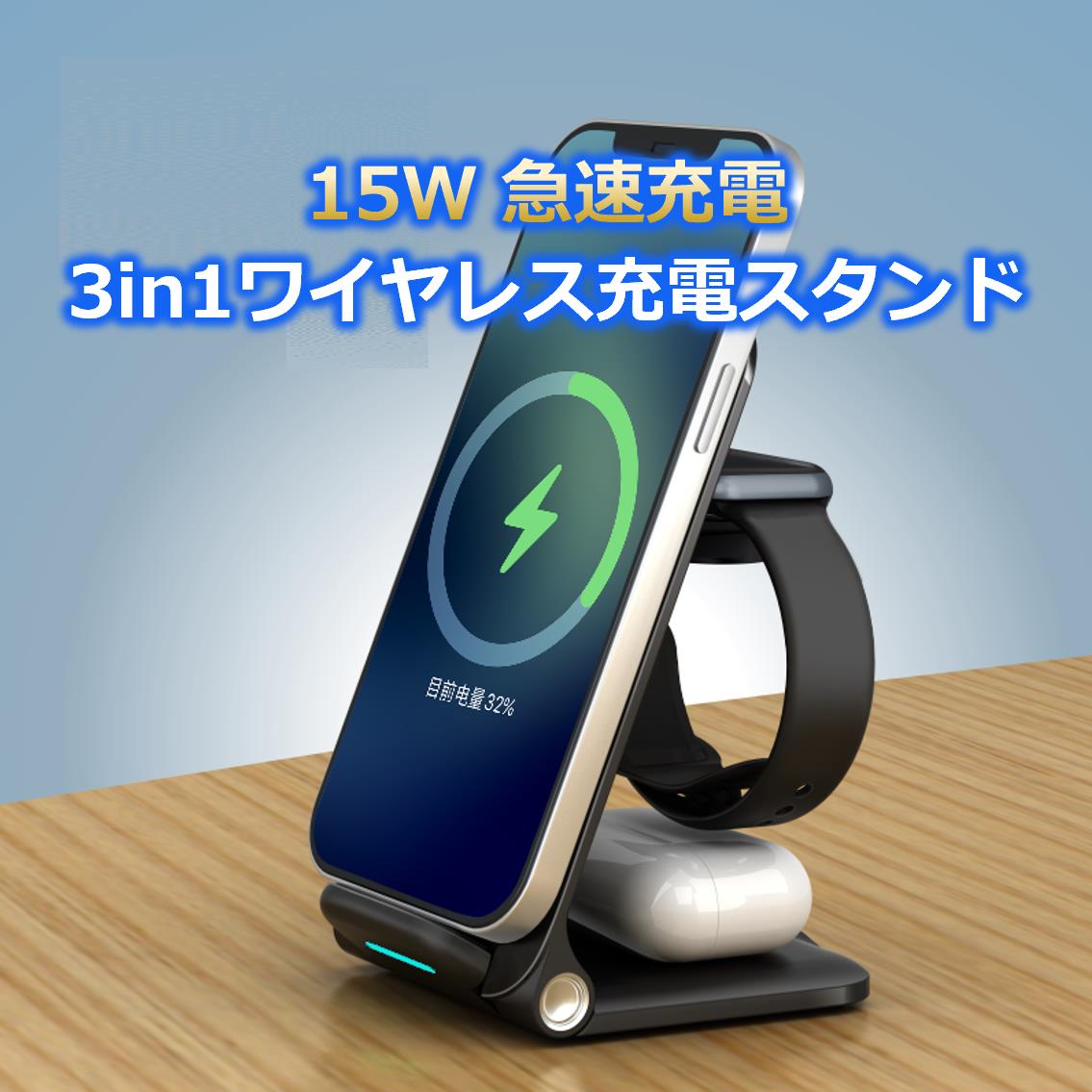 15W急速充電対応の3in1ワイヤレス充電スタンドです。