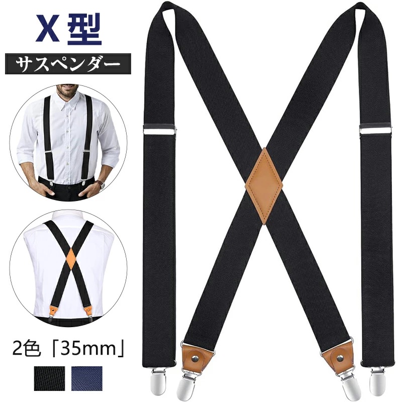 サスペンダー X型 クリップ式 調節可能 錆びない ワンサイズ ズボン吊り ホルスター ビジネス カジュアル フォーマル 結婚式 就活 プレゼント ギフト LHT