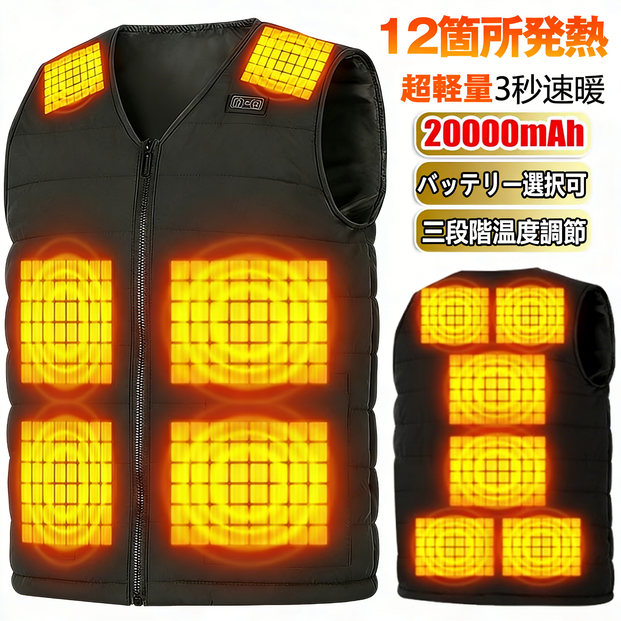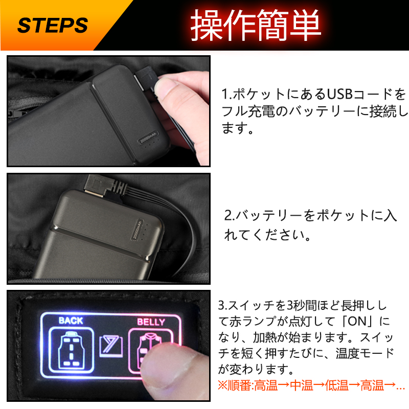 ポイント:本当の12箇所発熱、35-55℃、3段階温度調節、USB接続式、超軽量