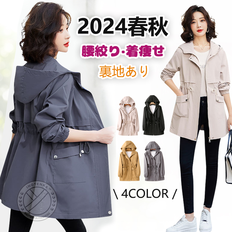 マウンテンパーカー レディース ウインドブレーカー アウター フード付き ジャケット トレンチコート スプリング 着痩せ 無地 軽量 通勤 通学 春 秋 冬 LHT