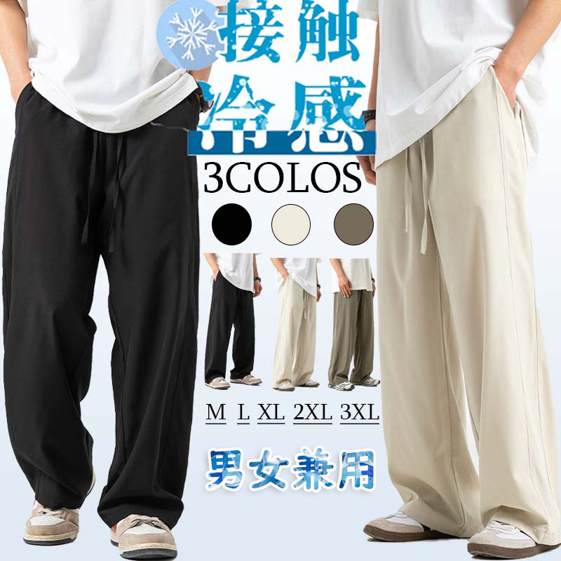 ワイドパンツ メンズ 夏 アイスシルクパンツ スラックス ボトムス 接触冷感 夏服 大きいサイズ 調整紐 吸水速乾 無地 イージーパンツ 登山 釣り 通勤 通学 LHT