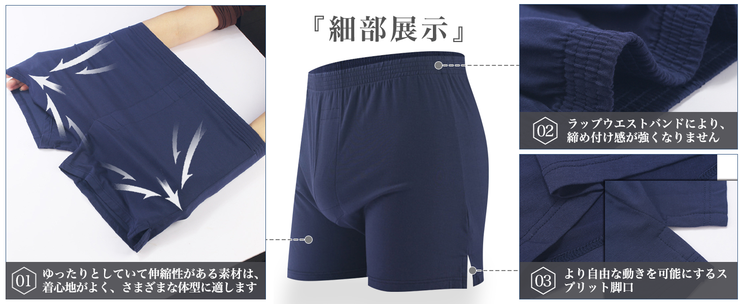 [快適な着用感]下着ズボンが全体的に伸縮性があり、ズボンには脚口のサイドが開いており、幅広のゴムで腹部への圧迫感が少なく、開放的な履き心地です。しっかりとしていながら締め付け感がなく、長時間履いていても不快感を感じさせません。仕事でも睡眠でもアウトドアスポーツでも、快適さを与えることができます。