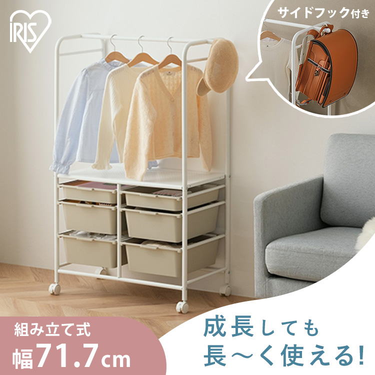 (検索用:ハンガーラック 子供 スリム ランドセルラック キャスター付き 収納 キッズ 頑丈 洋服掛けラック おしゃれ ワードローブ 引き出し 洋服 子供部屋 子ども アイリスオーヤマ 4967576774871)