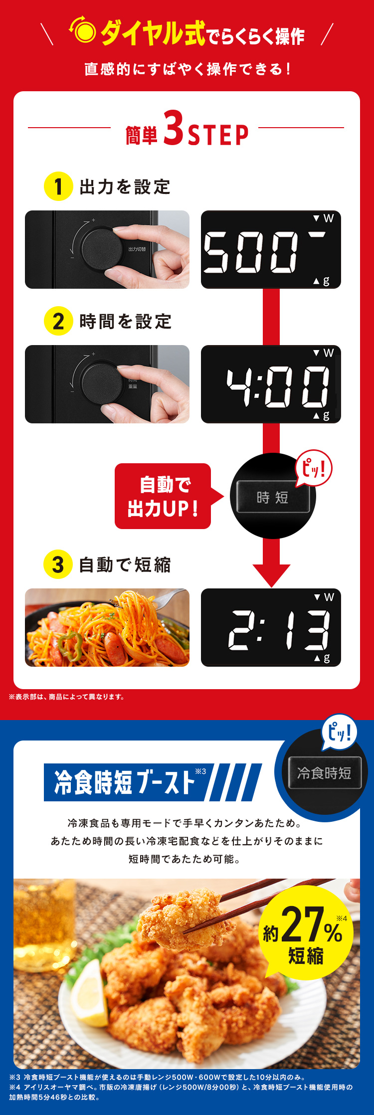 ※1 高周波出力900Wは短時間高出力機能(3分)であり、調理中に自動的に600Wに切り替わります。
