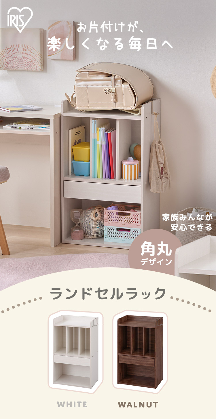 (検索用:ランドセルラック ランドセル収納 棚 ラック 絵本棚 こども用 オープンラック 絵本ラック おしゃれ 本棚 引き出し付き 角丸デザイン 安心設計 ランドセル収納ラック リビング 子供部屋 子供 子ども 入園 入学 4967576799249 4967576799256)