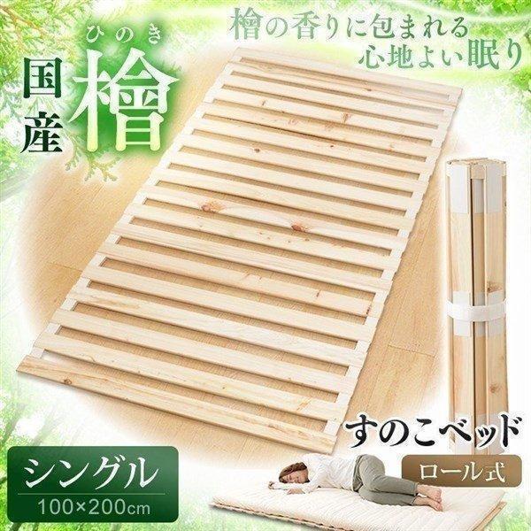 すのこマット シングル ロール式 すのこベッド ヒノキ 折りたたみベッド ロールタイプ シングルベッド スノコベッド 父の日