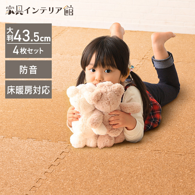 コルクマット ジョイントマット 大判 43.5cm 4枚 0.8cm プレイマット クッションマット 防音 フロアマット ペット ベビーマット おしゃれ 犬 猫 子供 COJTM-4508