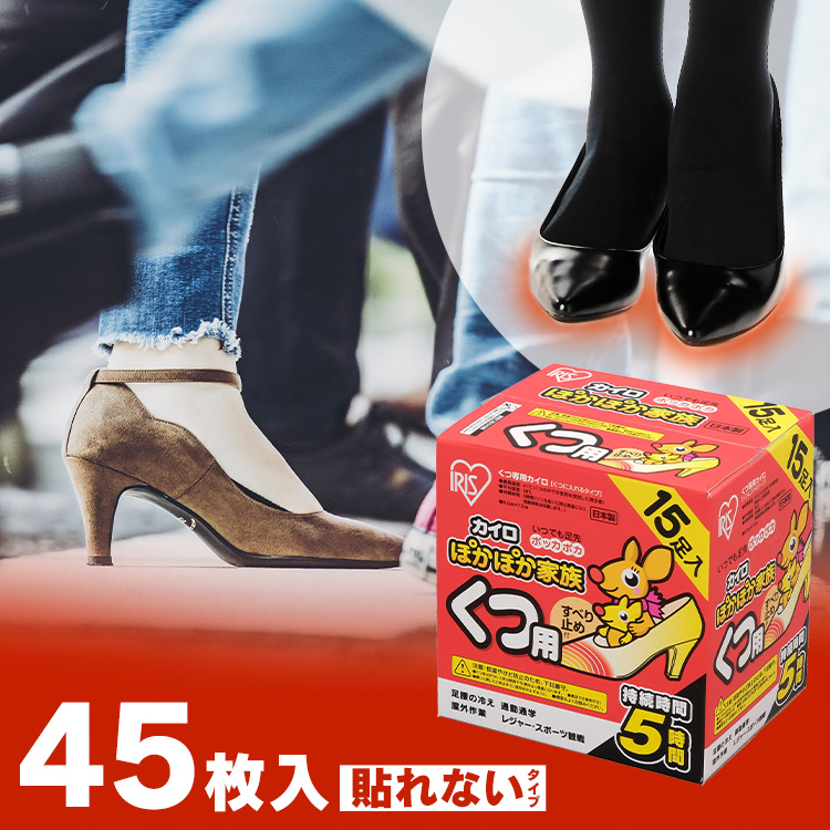 カイロ 貼らない 貼らないカイロ 靴用カイロ 45足 (15足入×3個) すべり止め付 使い捨て 貼れない アイリスオーヤマ ぽかぽか家族 PKN-15K #