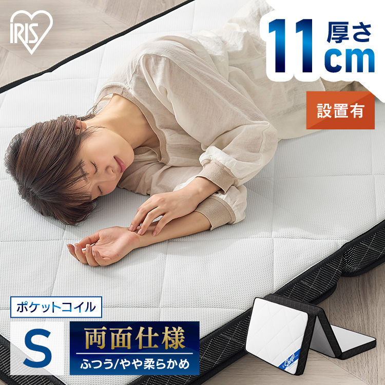 (検索用:マットレス シングル 三つ折り 折りたたみ 10cm 以上 11cm 硬め 柔らか リバーシブル ポケットコイル コンパクト 軽量 折り畳み 敷布団 組立設置 4967576731973)
