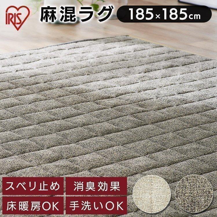 ラグ マット おしゃれ 洗える カーペット 2畳 滑り止め 床暖対応 ラグマット 麻混ラグ 麻混 正方形 冬 一人暮らし 185×185 ORG-A1818 アイリスオーヤマ 冬用