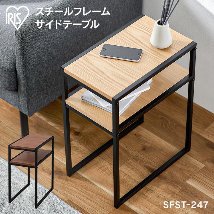 サイドテーブル 2段 棚付き おしゃれ ミニテーブル ベッドサイドテーブル ナイトテーブル ナチュラル ウォルナット SFST-247 アイリスオーヤマ [AK]