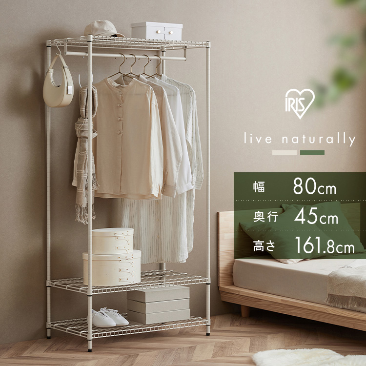 [ワードローブタイプ:大/W80×D45×H161.8cm(アジャスター含む)]。