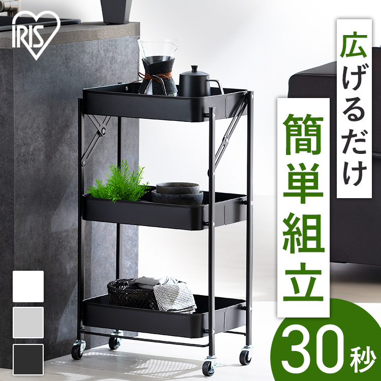 (検索用:キッチンワゴン キャスター付き 3段 スリム 折りたたみ キャスター付き ワゴン ストッパー付き スチールワゴン 北欧 組立簡単 収納 4967576743358 4967576743365 4967576743372)