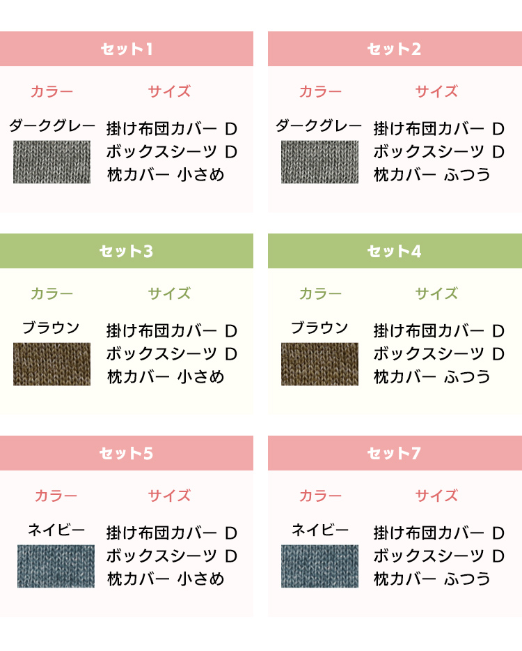 やわらかく肌なじみのよいテクスチャーの天竺ニット寝具カバーの3点セットです。