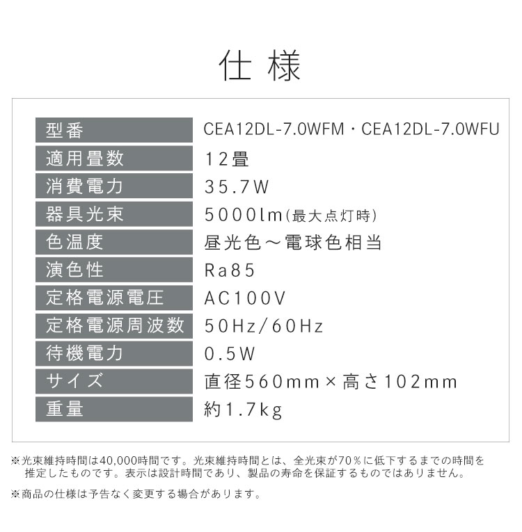 ※光束維持時間は約40000時間です。光束維持時間とは、全光束が70%に低下するまでの時間を推定したものです。表示は設計時間であり、製品の寿命を保証するものではありません。