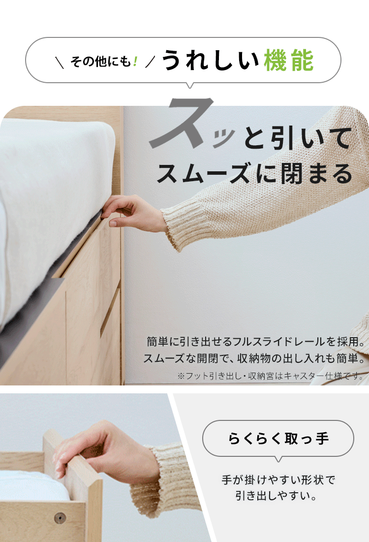 また、床板のすのこは片面仕様で取り外しが簡単なので、収納物の出し入れもスムーズです。