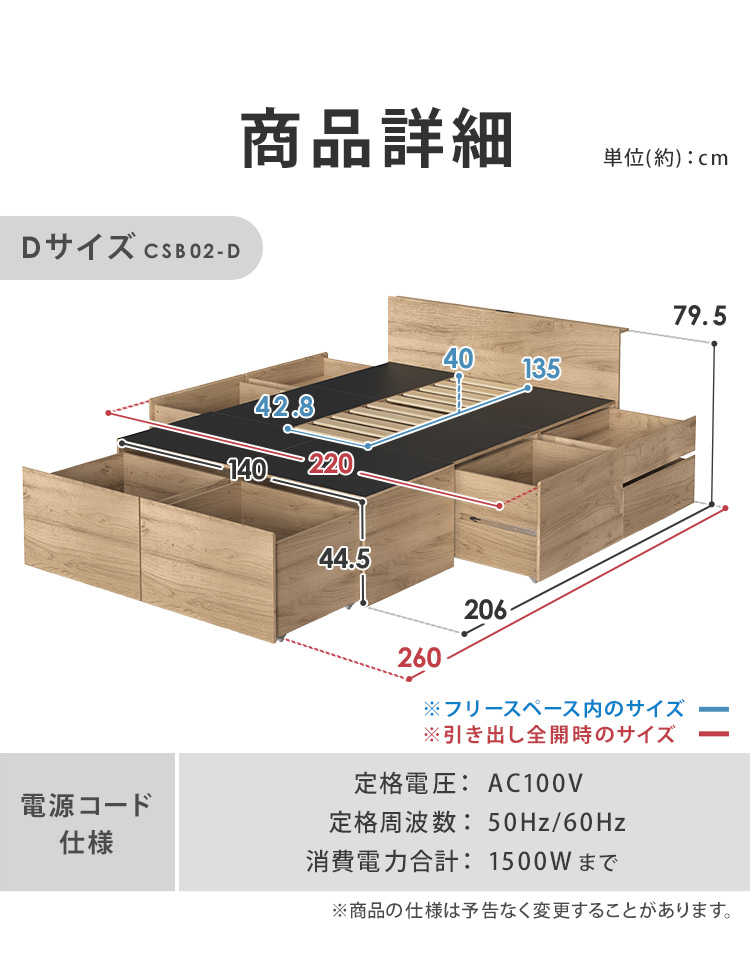 (検索用:ベッド ダブル 収納 大容量 超収納 引出し 8個 棚 2口コンセント 滑り止め付 布団 洋服 家電 小物収納 ベッドフレーム ヘッドボード 宮付き ハイタイプ チェストベッド 新生活 ベット 収納付ベッド 超収納ベッド 4967576813082 4967576813099 4967576813105)