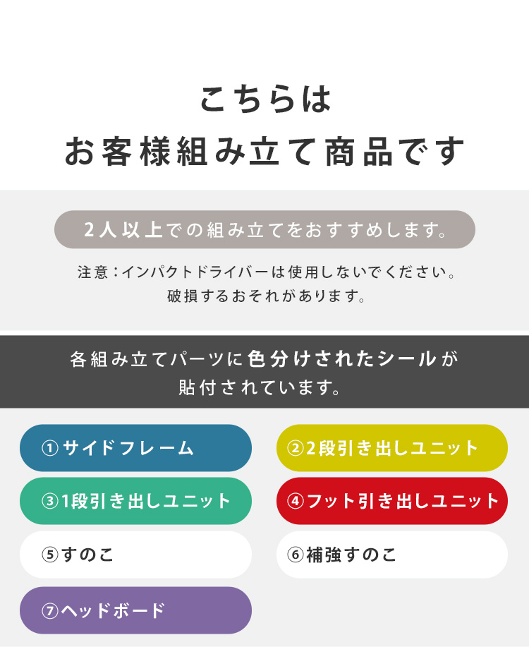 最大10個の引き出し付きで、収納力を重視する方におすすめな収納宮付きタイプです。