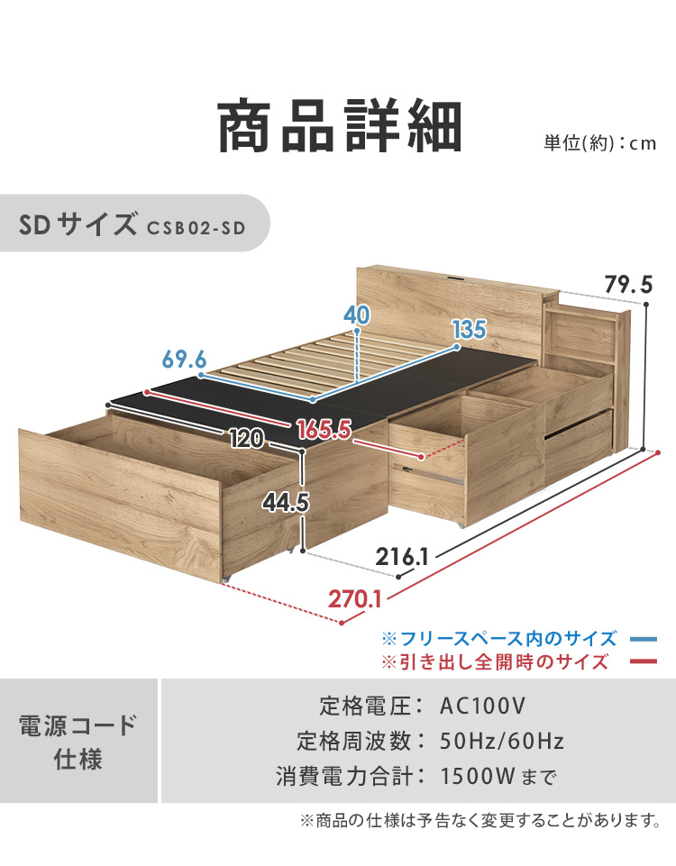 (検索用:ベッド セミダブル 収納 大容量 超収納 引出し 5個 棚 2口コンセント付 スライド本棚 布団 洋服 家電 小物収納 ベッドフレーム ヘッドボード 宮付き ハイタイプ チェストベッド 新生活 ベット 収納付ベッド 超収納ベッド 4967576813143 4967576813150 4967576813167)
